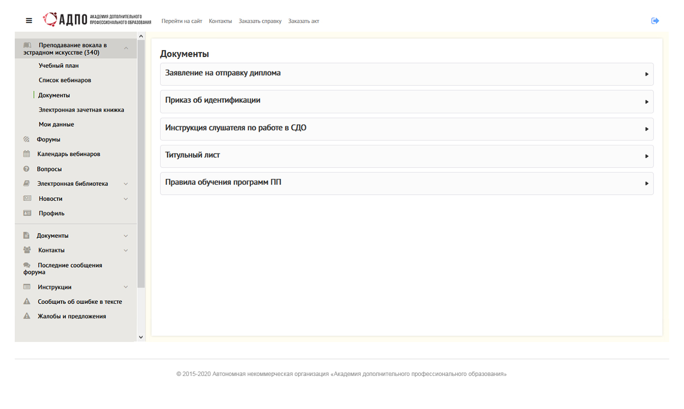Здесь вы найдете инструкцию обучающегося по работе в СДО, приказ об идентификации личности, информацию о получении документа о квалификации.