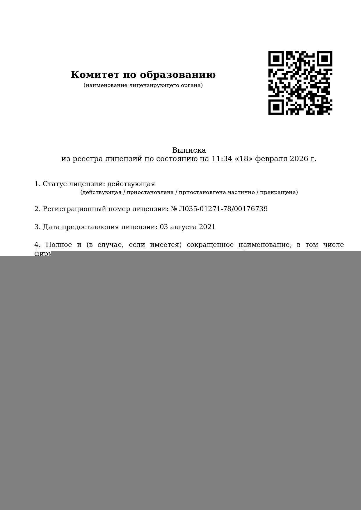 Регистрационный номер лицензии: № Л035-01271-78/00176739